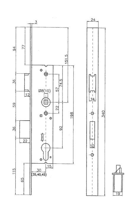 Bever Rohrrahmen-Einsteckschloss ( 3000251216 ) PZW 24/35/92/10 mm DIN links / rechts Riegelausschluss 22 mm 340 mm