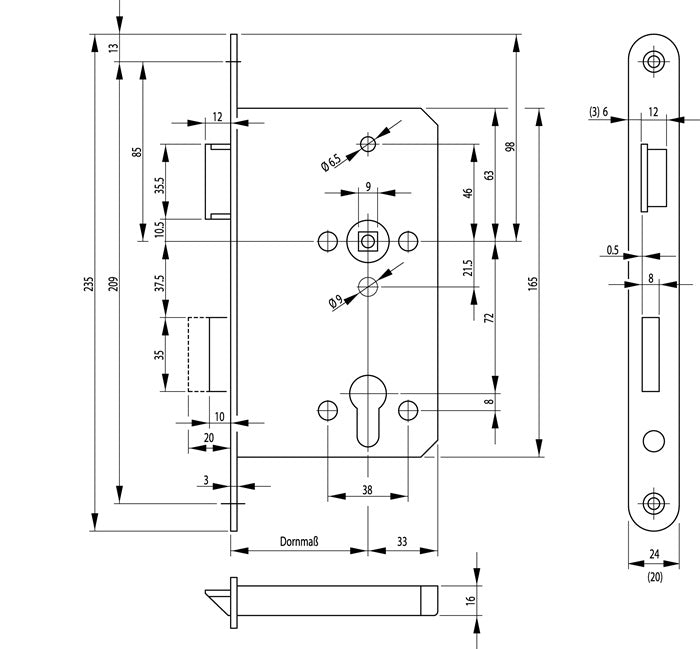 BKS Panik-Einsteckschloss 1201 Panik-Funktion D abgerundet ( 3000251568 )