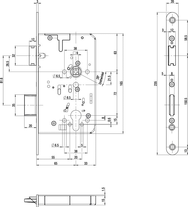 BKS Panik-Einsteckschloss 2320 Panik-Funktion B abgerundet ( 3324024355 )