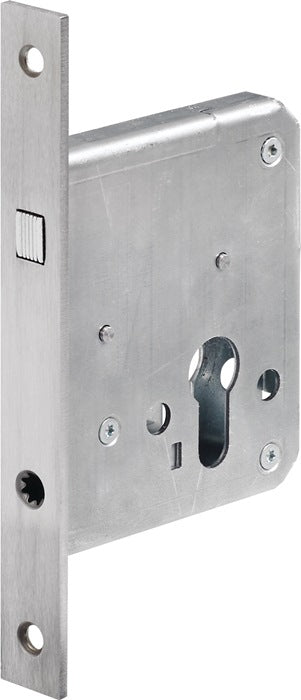 Ausführung mit Klappring-Schlüssel · allseitig geschlossener Schlosskasten · Stulplänge 172 mm · Dornmaß 55 mm · DIN links / rechts verwendbar · Zirkelriegel verchromt · ohne Schließblech · Klappring-Schlüsselausführung nur bei BB-Lochung