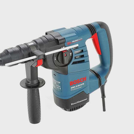 Der Bohrhammer GBH 3-28 DFR zeichnet sich durch eine 20% höhere Meißelleistung als alle anderen Geräte seiner Klasse aus. Für ein angenehmes Arbeiten, auch bei längeren Einsätzen, sorgt die Bosch-Vibrationsdämpfung und das ausgewogene Gewichtsverhältnis steht für sicheren Halt und leichte Führung des GBH 3-28 DFR, selbst bei Überkopfarbeiten. Für einen sauberen Arbeitsfortschritt sorgt die drehbare Büstenplatte, welche für gleichbleibende Leistung im rRechts- und Linkslauf sorgt. Das Wechselfutter eignet sich zum schnellen Wechsel zwischen Bohren mit Schlag in beispielsweise Beton oder ohne Schlag in Holz oder Metall. Auch ist der GBH 3-28 DFR mit einem Drehstop zum Meißeln ausgestattet.