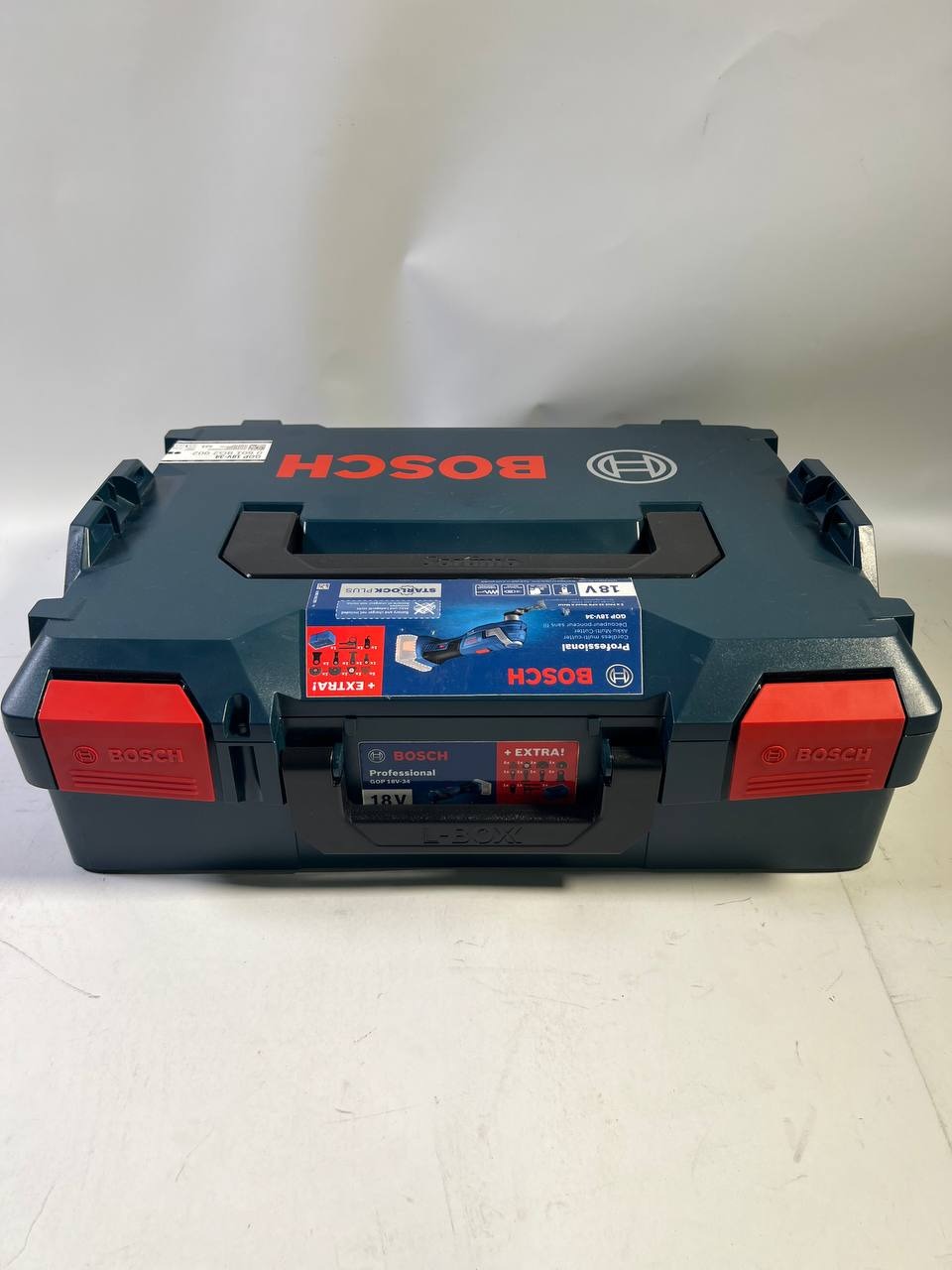 Bosch GOP 18V-34 Professional Akku Multi Cutter 18 V Starlock Plus ( 06018G2002 ) + 17 tlg. Zubehör + L-Boxx - ohne Akku, ohne Ladegerät - Leicht Gebraucht