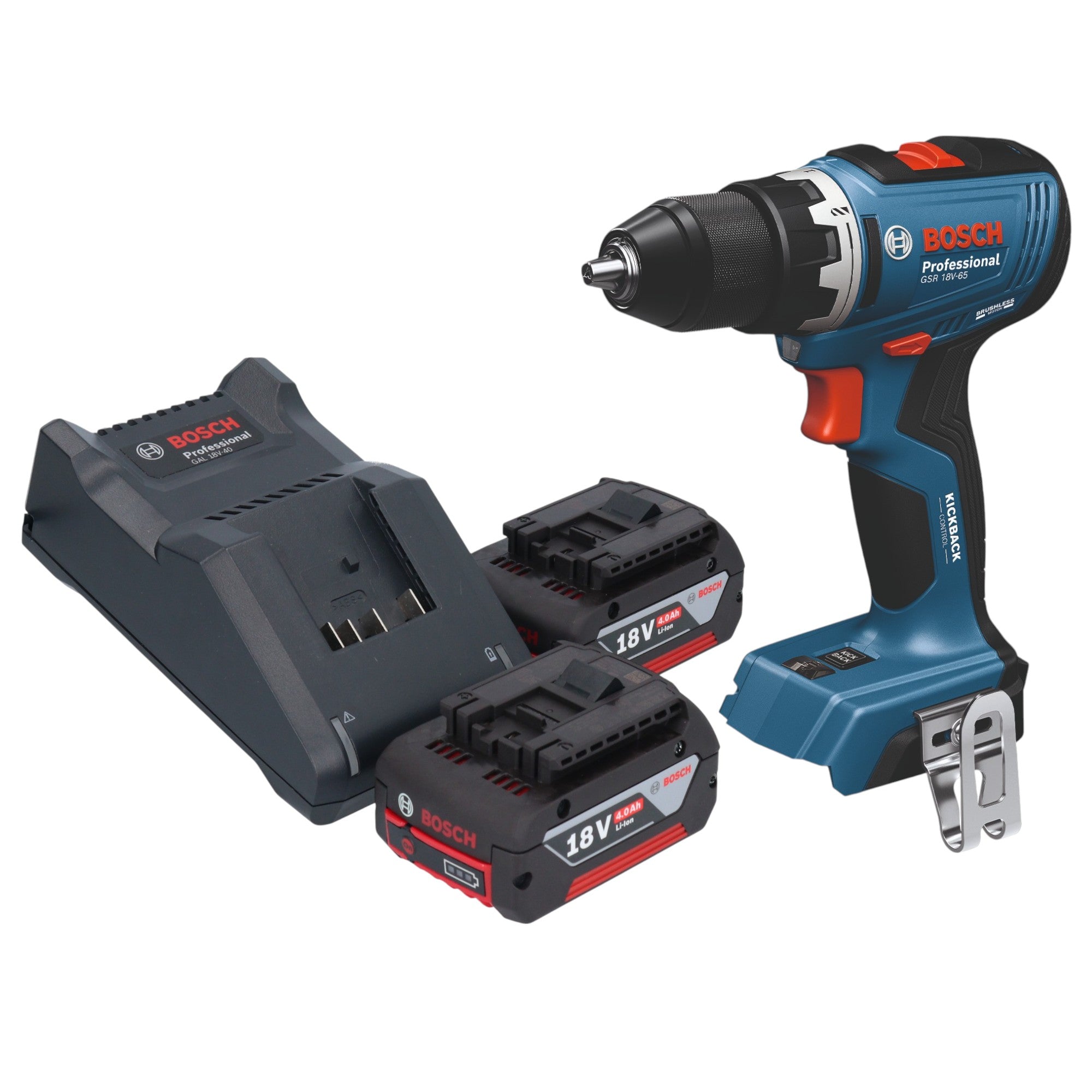 Bosch GSB 18V-65 Professional Akku Schlagbohrschrauber 18 V 65 Nm Brushless + 2x Akku 4,0 Ah + Ladegerät