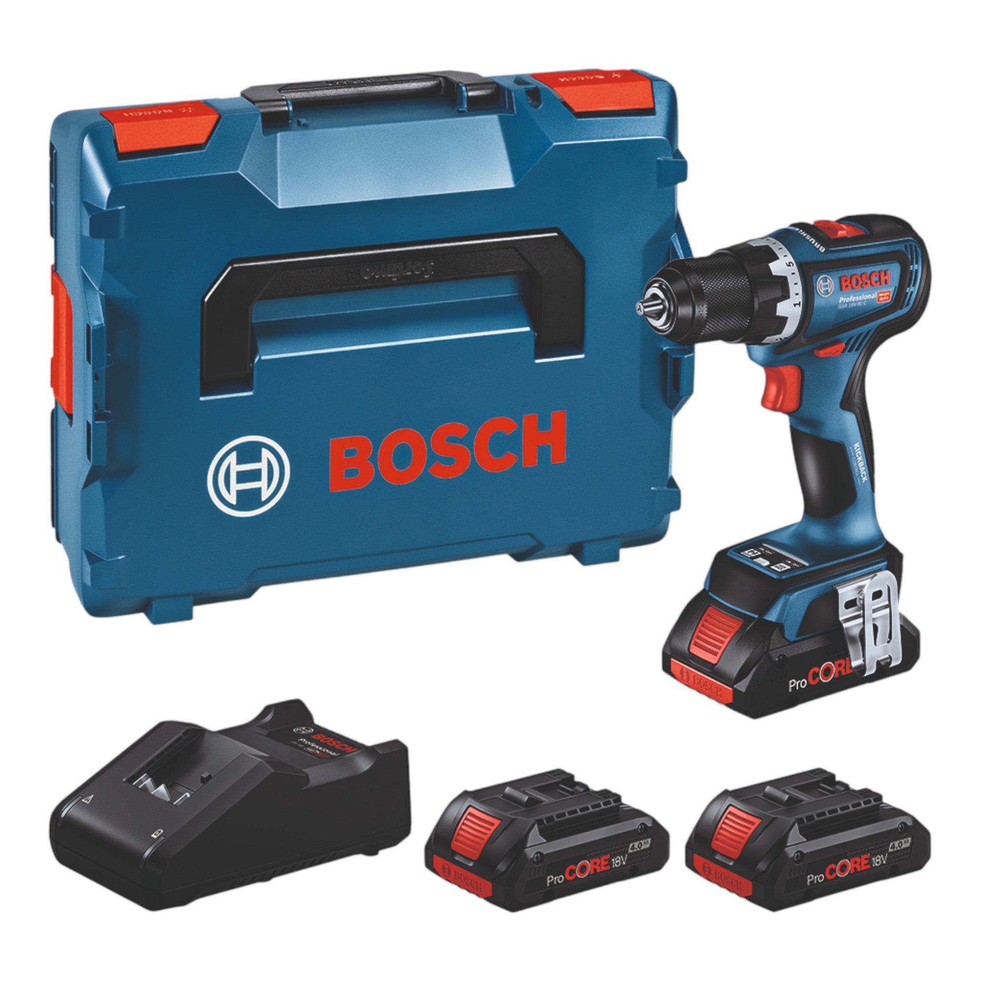 Bosch GSR 18V-90 C Professional Akku Bohrschrauber 18 V 64 Nm Brushless ( 0615A5002R ) + 3x ProCORE Akku 4,0 Ah + Ladegerät + L-Boxx