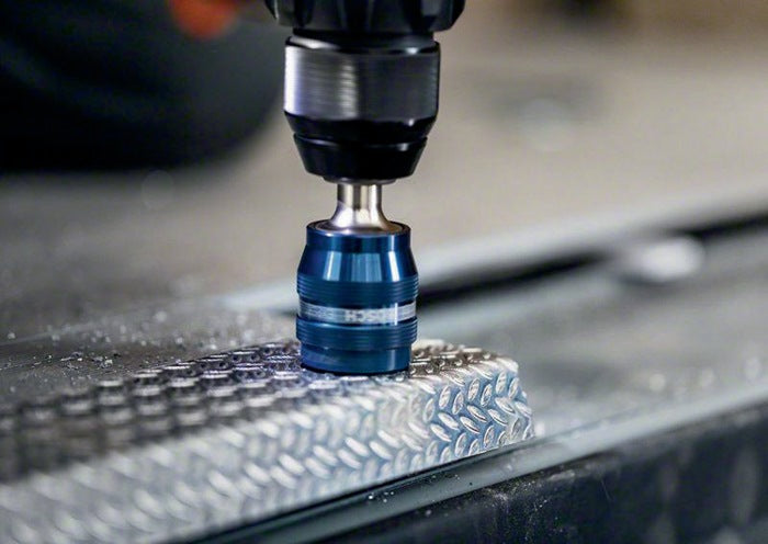 lange Lebensdauer beim Schneiden von Löchern in Edelstahl · besteht aus einem einzigen Zylinder aus gedrehtem Metall · extreme Lebensdauer · Carbide-Zähne - zum Schneiden von härtesten Stahlsorten · zur Verwendung mit dem Power Change Plus-Schnellspann-Adapter