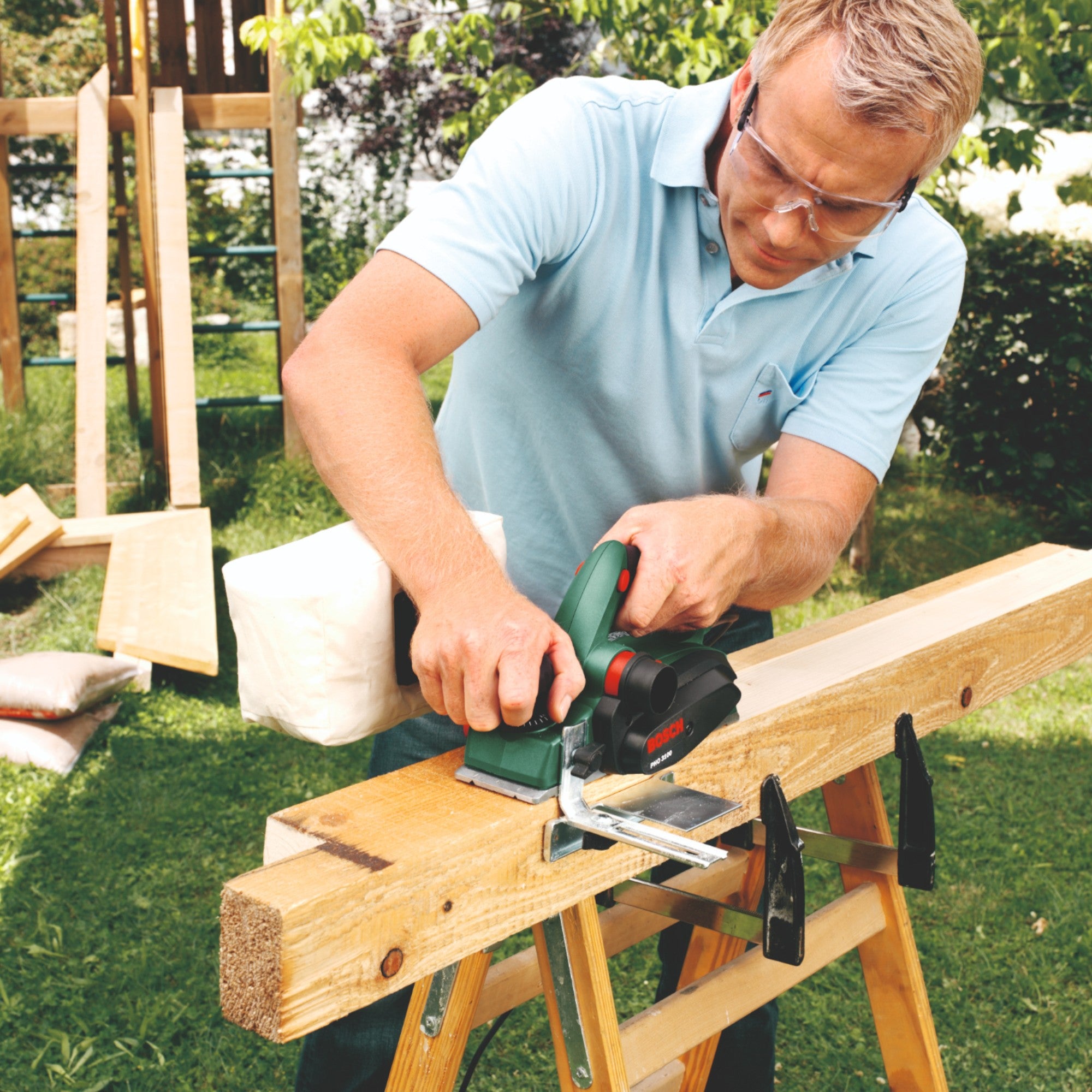 Der Bosch PHO 3100 Elektro Hobel überzeugt durch seinen kraftvollen 750-Watt-Motor, der selbst anspruchsvolle Holzarbeiten mit einer Schnitttiefe von bis zu 3,1 mm mühelos bewältigt. Das Woodrazor-Messersystem sorgt dabei für eine besonders glatte und saubere Oberfläche, während der zweiseitige Spanauswurf mit Anschlussmöglichkeit für Staubsack oder Staubsauger für eine saubere Arbeitsumgebung sorgt. Dank des mitgelieferten Parallelanschlags lassen sich gerade und präzise Hobelarbeiten problemlos ausführen. Der kompakte und präzise Hobel eignet sich ideal zum Hobeln, Anfasen von Kanten sowie zum Entfernen von Beschichtungen auf Hart- und Weichholz und bietet damit eine perfekte Kombination aus Leistung, Präzision und Benutzerfreundlichkeit.