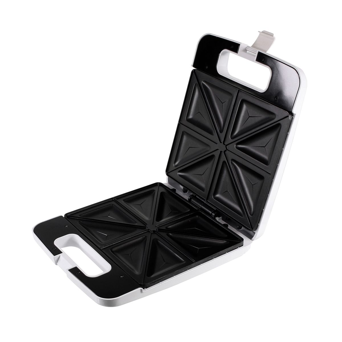 Sagenhafte 4 Scheiben Sandwich können parallel ausgebacken werden. Die Edelstahleinlage mit den Dreieckigen Sandwichplatten ist hochwertig verarbeitet, und durch die Antihaftbeschichtung ist ein Festpappen des Sandwiches nicht möglich. Der wärmeisolierte Griff verhindert Verbrennungen bei öffnen während des Betriebs. Durch die automatische Temperaturregelung und den Kontrollleuchten ist der Bräununggrad problemlos erkennbar. Die gummierten Füße verhindern ein verrutschen des Gerätes und der Überhitzungsschutz sorgt für die in Deutschland vorgeschrieben Sicherheit. Selbstverständlich wird dies durch das CE Siegel bestätigt.