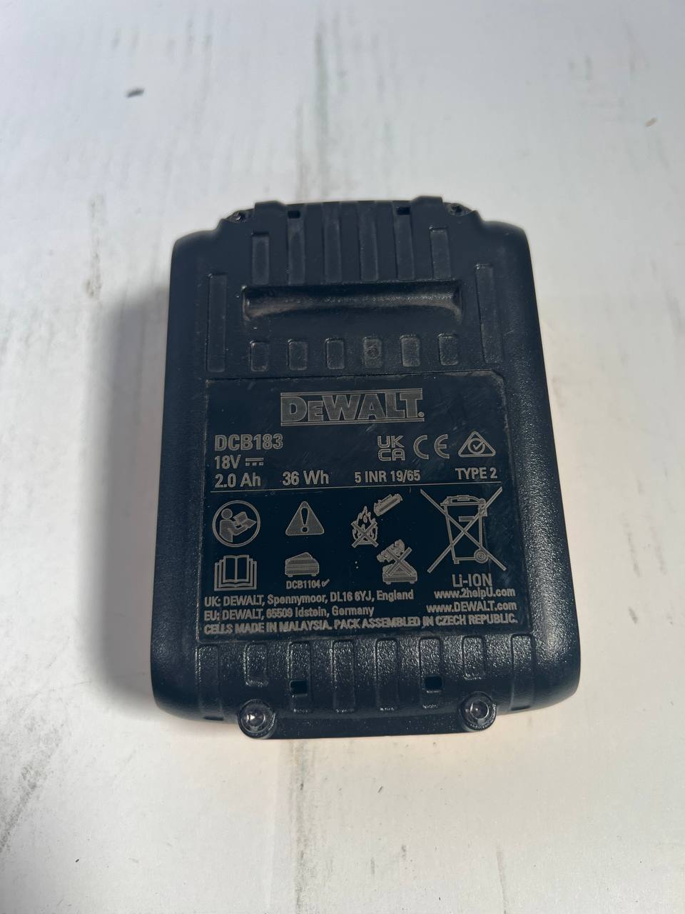 DeWalt DCB 183 Akkupack 18 V 2,0 Ah / 2000 mAh XR Li-Ion Akku - mit Ladestandanzeige - Leicht Gebraucht