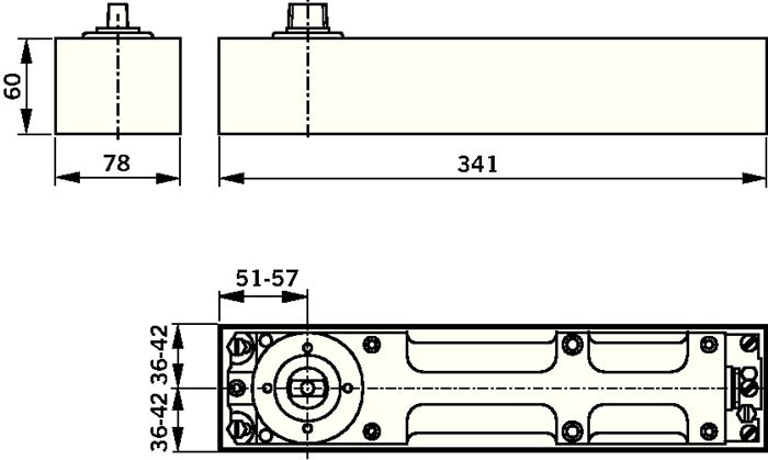 Universal-Bodentürschließer nach EN 1154 · für DIN-links-, DIN-rechts- und Pendeltüren bis 300 kg Türgewicht · mit stufenlos einstellbarer Schließgeschwindigkeit · Schließwirkung ab ca. 175° · mit hydraulisch voll kontrolliertem Schließablauf und Öffnungsdämpfung · mit integriertem Druckausgleich für konstante, stufenlose, von Temperaturschwankungen unabhängige Feststellung zwischen 75° und 175° Türöffnung (abstellbar) · mit stufenlos einstellbarem Feststellbeginn, Schließverzögerung (Verzögerungsende zwischen 75° und 105° einstellbar) · einschließlich Zementkasten Zubehör wie andere Steckachsen und Vergussmasse auf Anfrage