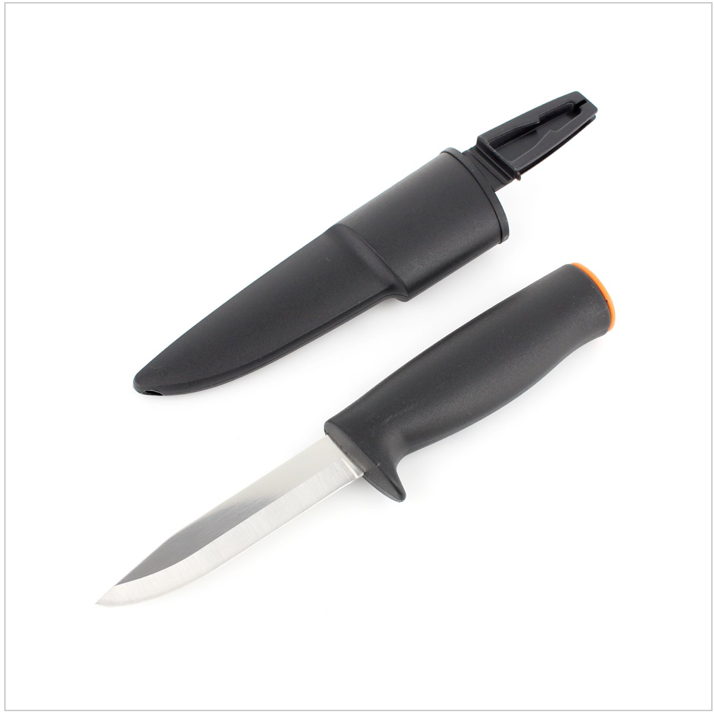 Das Fiskars K40 Universalmesser lässt sich in vielen verschiedenen Bereichen anwenden. Beispielsweise eignet es sich hervorragend für diverse Gartenarbeiten, Outdoor-Aktivitäten, oder beim Campen und Wandern. Außerdem macht es eine gute Figur beim Schnitzen von Holz und auch als Gemüsemesser. Mit seinen 70g Gewicht und der Länge von 22cm und dem ergonomischen, sowie rutschfesten Griff aus Kunststoff ist es besonders handlich. Ein Fingerschutz verhindert ein Abrutschen und sorgt für eine hohe Sicherheit beim Arbeiten. Die 10cm lange Klinge aus hochwertigem Stahl ist rostfrei und besonders langlebig. Des Weiteren wird ein Köcher mit Gürtelschlaufe mitgeliefert, womit sich das Messer bequem transportieren lässt.