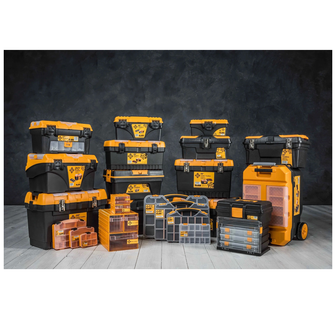 FORTE Tools MG-22 Jumbo Toolbox in 58x23x31 cm, Werkzeugkoffer, Koffer mit Metall-Laschen und internen Organizer, herausnehmbar, abschließbar ( 000051144585 )