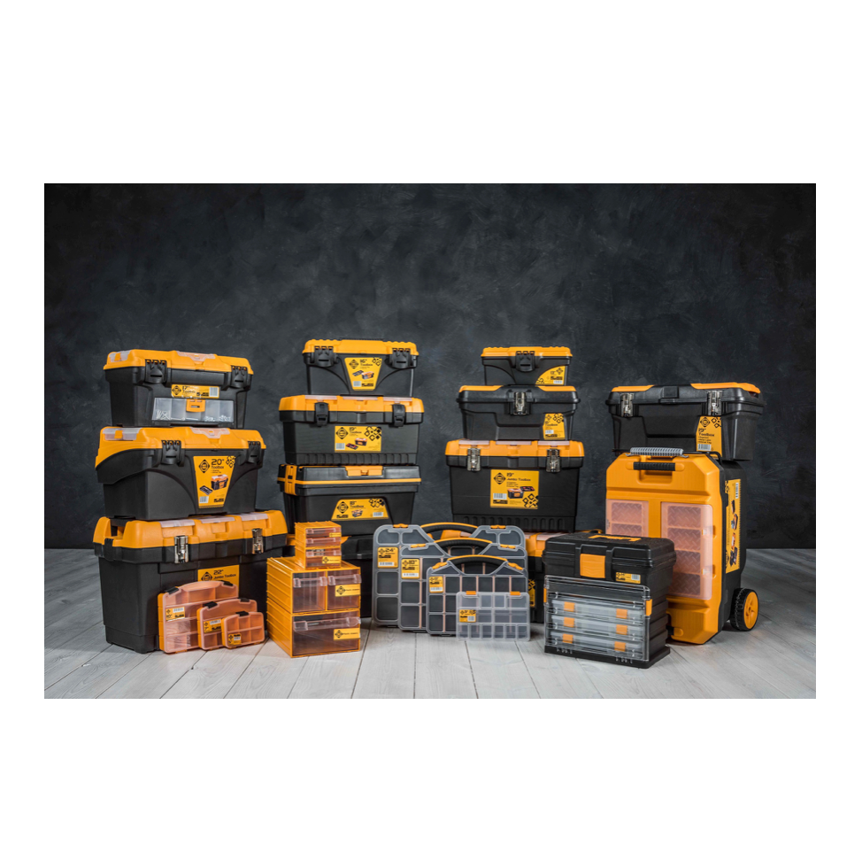 Der neue ORG-13 Organizer von FORTE Tools wurde entwickelt, um Werkstatt und Baustelle näher zusammen zubringen. Kleinteile, Zubehör und Verbrauchsmaterialien sind in den variablen Einsatzboxen sicher verstaut und einfach zu transportieren. Durch den transparenten Deckel haben Sie immer einen guten Überblick über den Inhalt des Organizers. Kleinteile lassen sich durch Einsatzboxen in 18 verschiedenen Größen individuell sortieren. Entdecken Sie jetzt die FORTE Tools Organizer und Werkzeugkoffer - Welt und bringen Sie Ordnung in Ihre Werkstatt!