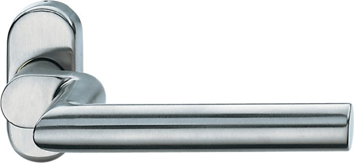 verkröpft · auf ovaler Rosette mit unsichtbarer Befestigung für Senkschrauben M5 (Schraublochabstand 50 mm) mit Hochhaltefeder · mit 8 mm Lochung (Standard-Vierkant) oder 9 mm für Feuer- und Rauchschutztüren · fest/drehbar gelagert - Lieferung ohne Stift und Schrauben -
