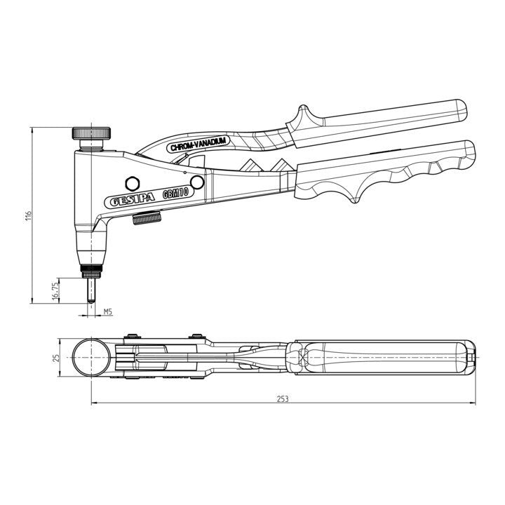 Blindnietmutterhandgerät GBM10 Gesamt-L.260mm Gewicht 0,6kg Hub 7mm