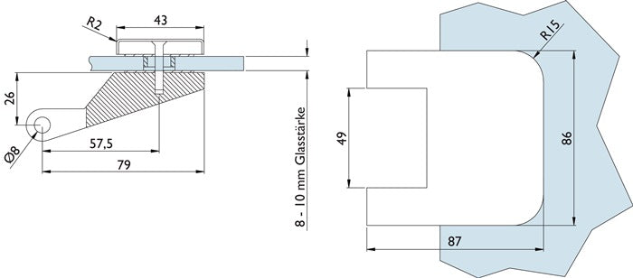 Glastürband 6325-20 ( 3000253950 ) Leichtmetall Edelstahlfarbig für 3-teillig