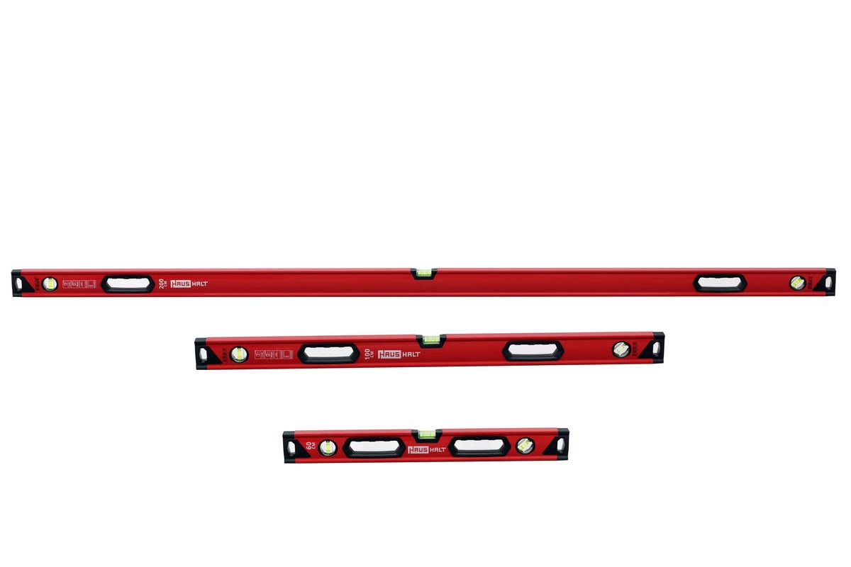 HAUSHALT Wasserwaage 1000 mm mit 3 Libellen und ergonomischer gummierter Griff 640 g rot