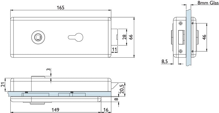 HERMAT Glastürschloss 6083 PZ - Genova Edelstahl matt ( 3000253943 )