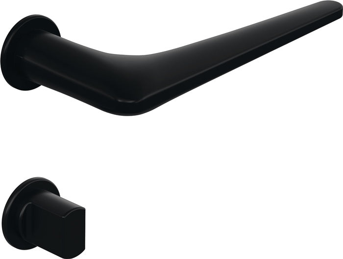 Frei-Besetzt-Garnitur · mit flacher Drückerrosette, Abdeck-Kappe aus mattem Polyamid, Türdrücker Modell 162.21PBM in Gehrungsform aus mattem Polyamid mit durchgehendem Stahlkern, Vierkantstift 8 mm, für Österreich 8,5 mm, mit Trapezgewinde · Fixierung der Drücker in einem Einpresslager und einer Polyamid-Gleitlagerbuchse · mit WC-Rosette 306PBMNR · Durchmesser 32 mm · Ausführung mit Notöffnung Münze, optional Schauscheibe (rot/grün) auf Außenseite · Montage der Einpressbuchsen mittels Montagemutter mit Trapezgewinde, SW 19, mit einem Ringschlüssel SW 19 · die Montage wird empfohlen an stumpfen wie auch gefälzten Wohnraum- und Innentüren mit HDF-Deckplatte und Mittellagen aus Röhrenspan- bzw. Vollspaneinlage oder hochwertiger