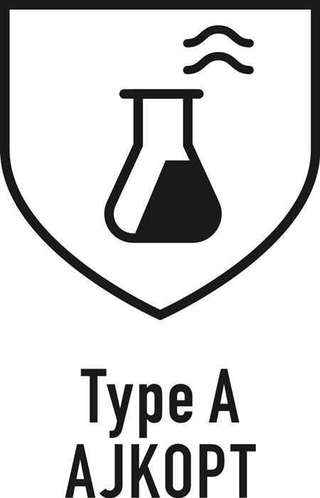 • Chemikalienfestigkeit: A = Methanol / J = n-Heptan / K = Natriumhydroxid 40 % / O = Ammoniakwasser 25 % / P = Wasserstoffperoxid 30 % / T = Formaldehyd 37 %