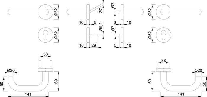 HOPPE Feuerschutzgarnitur Paris FS-E138/42H/42HS Edelstahl F69 D/D ( 3000203108 )