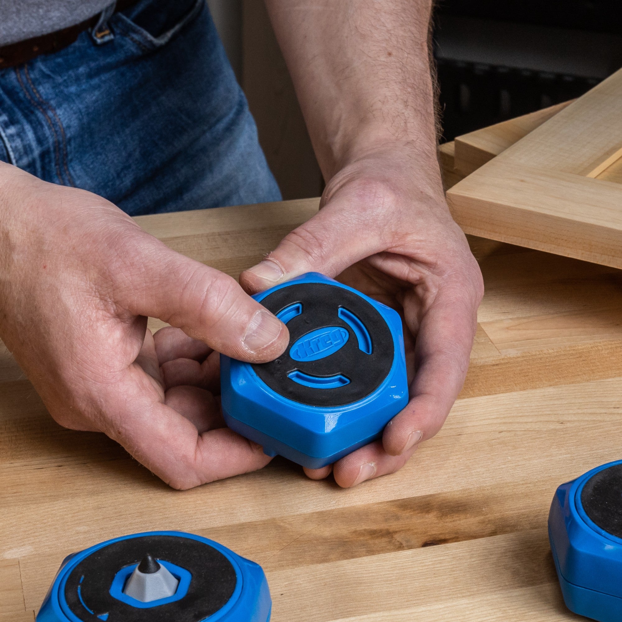 Die Kreg Anti-Rutsch-Blöcke KFS-PUCK sind praktische Arbeitsunterstützer, die deine Werkstücke sicher und stabil fixieren, während du sägst, hobelst oder schleifst. Sie verhindern ungewolltes Verrutschen auf glatten Flächen und sorgen so für präziseres Arbeiten und mehr Sicherheit am Arbeitsplatz. Die Anti-Rutsch-Blöcke bestehen aus robustem Kunststoff mit rutschfester Oberfläche, die auch bei leichter Feuchtigkeit oder Staub guten Halt bietet, ohne das Werkstück zu beschädigen. Du kannst sie einzeln oder kombiniert einsetzen, was ideal für unterschiedlich große Werkstücke ist oder wenn du mehrere Auflagepunkte benötigst. Durch ihr kompaktes Format lassen sich die Blöcke leicht verstauen und bei Bedarf schnell am Arbeitsplatz positionieren. Die Kreg Anti-Rutsch-Blöcke sind ein vielseitiges Zubehör, das sich besonders für Heimwerker, Möbelbauer und professionelle Handwerker eignet, die Wert auf stabile Arbeitsbedingungen legen und wiederholt mit unterschiedlichsten Werkstücken arbeiten.