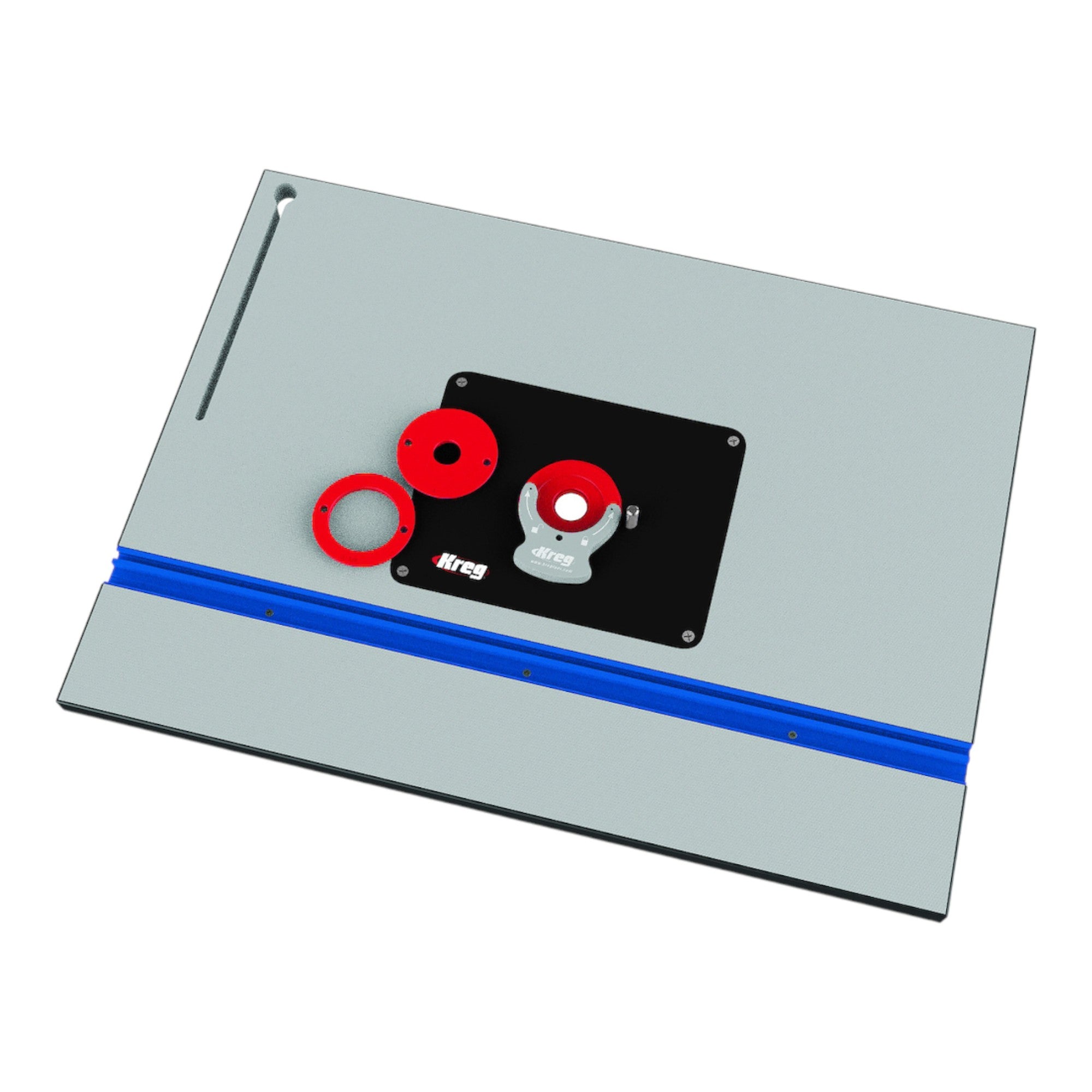 Die Kreg PRS1025 Präzisions-Frästischplatte ist eine hochwertige, robuste MDF-Tischplatte, die eine stabile, sichere und leise Fräslösung für jede Werkstatt bietet. Ihr 25 mm dicker MDF-Kern sorgt für eine flache und feste Arbeitsfläche, die Vibrationen zuverlässig absorbiert, während eine Stahlverstrebung auf der Unterseite ein Durchhängen selbst unter dem Gewicht schwerer Oberfräsen und Fräslifte verhindert. Die langlebige Hochdruck-Laminat-Beschichtung mit leicht genoppter, sauber verarbeiteter Oberfläche ermöglicht eine reibungsarme Easy-Slide®-Oberfläche, auf der Werkstücke mühelos bewegt werden können, während eine dicke Kante die Platte vor Stößen und Abschürfungen schützt. Die Oberseite ist vorgebohrt, um die Aufnahme von Präzisions-Einlegeplatten zu erleichtern, und eine hochbelastbare Einlegeplatte mit den Maßen 9,5 mm x 235 mm x 298 mm bewältigt auch große Oberfräsen problemlos. Die mitgelieferten Level-Loc-Reduzierringe lassen sich mit dem beiliegenden Ringschlüssel bündig in die Plattenoberfläche einsetzen, während ein Messingstift für einen kontrollierten Fräserkontakt beim Freihand-Fräsen sorgt. Das lasergravierte Raster auf der Unterseite ermöglicht eine exakte Zentrierung und Montage der Fräse, und vier Präzisions-Ausgleichsstücke sorgen dafür, dass Platte und Tischoberfläche perfekt bündig bleiben. Die vielseitige Tischplatte ist kompatibel mit Standard-Führungsnuten (9,5 mm x 19 mm) und kann zusätzlich Druckkämme und weiteres Zubehör aufnehmen. Sie verfügt über C-Nut-Profilschienen aus eloxiertem Aluminium (12,7 x 7,6 x 11 mm) sowie U-Nut-Profilschienen (19 x 9,5 mm) für maximale Flexibilität bei der Befestigung von Fräszubehör und Werkzeugen. In Kombination mit dem Kreg Präzisions-Fräsanschlag PRS1015, der durch eine selbst ausrichtende L-Konstruktion, Micro-Feineinstellung und einen verschiebbaren, höhenverstellbaren Frässchutz für präzise und sichere Führung sorgt, sowie dem Kreg Universal-Untergestell KRS1035, das als stabile Basis für Frästische, Werkbänke, Montagetische oder Werkzeugunterbauten dient, lässt sich ein maßgeschneidertes Frässystem erstellen, das alle Anforderungen von Hobby- bis Profianwendern erfüllt, höchste Präzision ermöglicht, langlebig ist und sowohl für kleine als auch für große Werkstücke ideal geeignet ist.