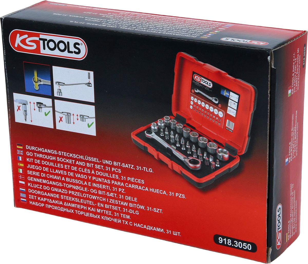 KS TOOLS 1/4" + 11 mm Durchgangs-Steckschlüssel- und Bit-Satz, 31-tlg ( 918.3050 )