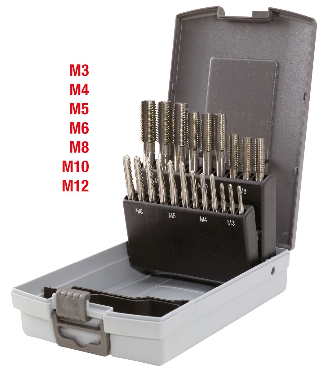 HSS CO Handgewindebohrer-Satz M, Kunststoffkassette 21-tlgM3-M12 · HSS Co Handgewindebohrer-Satz M in Kunststoffkassette
