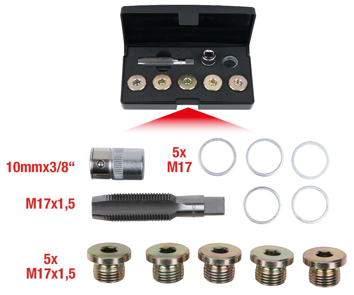 KS TOOLS Ölablassschrauben-Gewindereparatur-Satz, 12-tlg M17 x 1,5 ( 150.4930 )