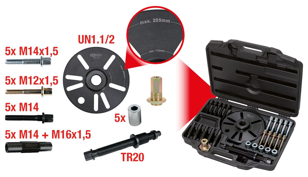KS TOOLS Universal-Radnabenabzieher für PKW, SUV, + Transporter, 28-tlg ( 700.1480 )
