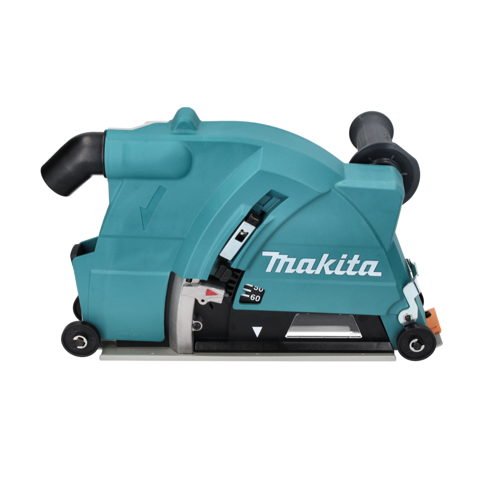 Die Absaughaube von Makita ist dank des Aluminiumgehäuses leicht und robust. Das Kunststoff-Sichtfenster ermöglicht ein präzises Ansetzen des Werkzeugs. Die Absaugung kann schnell und werkzeuglos durch eine Flügelschraube geöffnet werden. Sie ist für Schnitttiefen bis 60 mm bei der Verwendung einer 230 mm Scheibe geeignet. Der Absaugstutzen ist um 360° drehbar. Sie ist Werkzeuglos montierbar. Die Absaughaube ist mit den Makita Winkelschleifern 9069, GA 9010 C, GA 9012 C, GA 9020 R, GA 9020 S, GA 9030 R, GA 9030 S, GA 9040 R, GA 9050 R, GA 9061 R und DGA 900 kompatibel. Makita ist ein führender Hersteller von Elektrowerkzeugen, eine lange Tradition und eine hohe Verarbeitungsqualität zeichnen das Unternehmen aus.