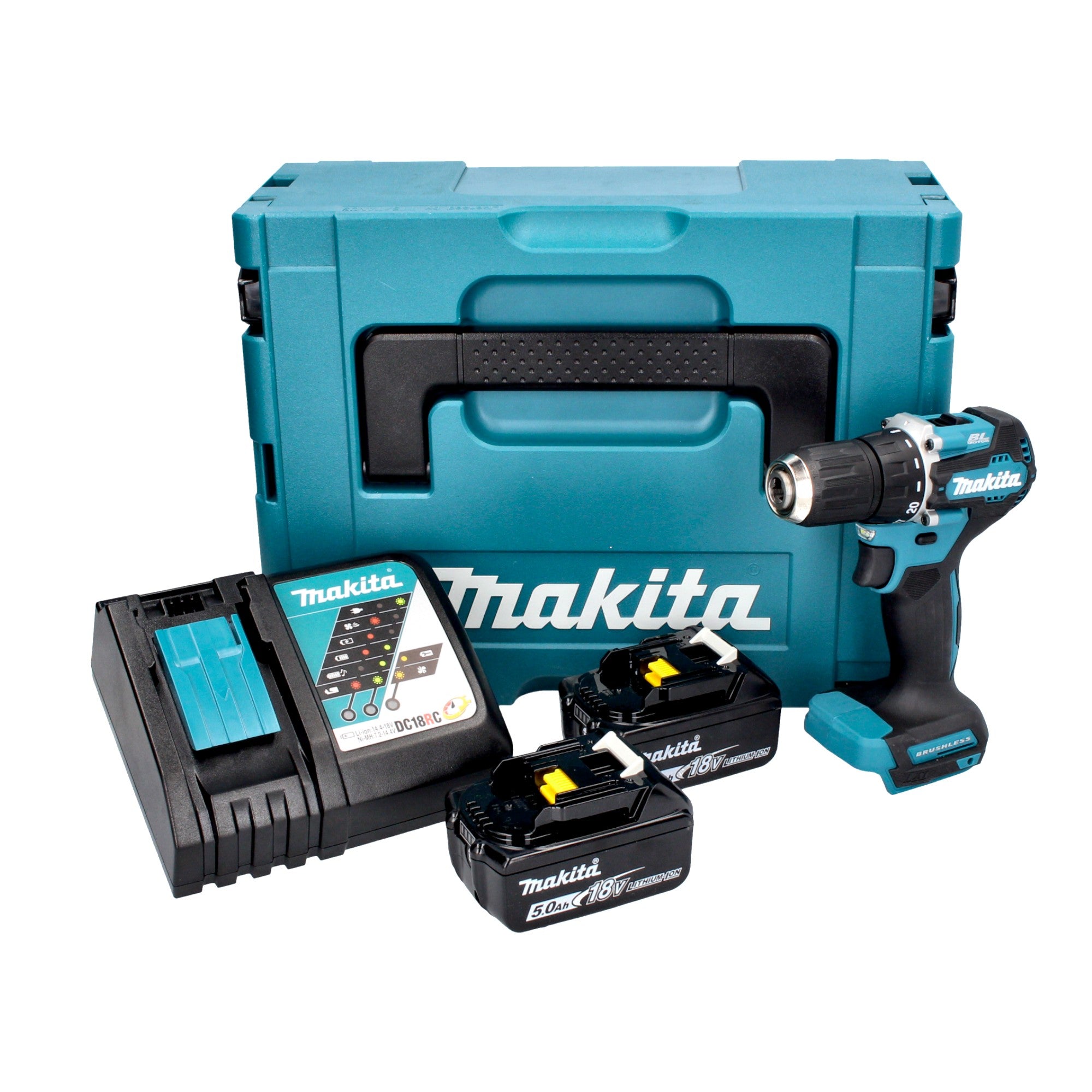 Makita DDF 487 RTJ Akku Bohrschrauber 18 V 40 Nm Brushless + 2x Akku 5,0 Ah + Ladegerät + Makpac