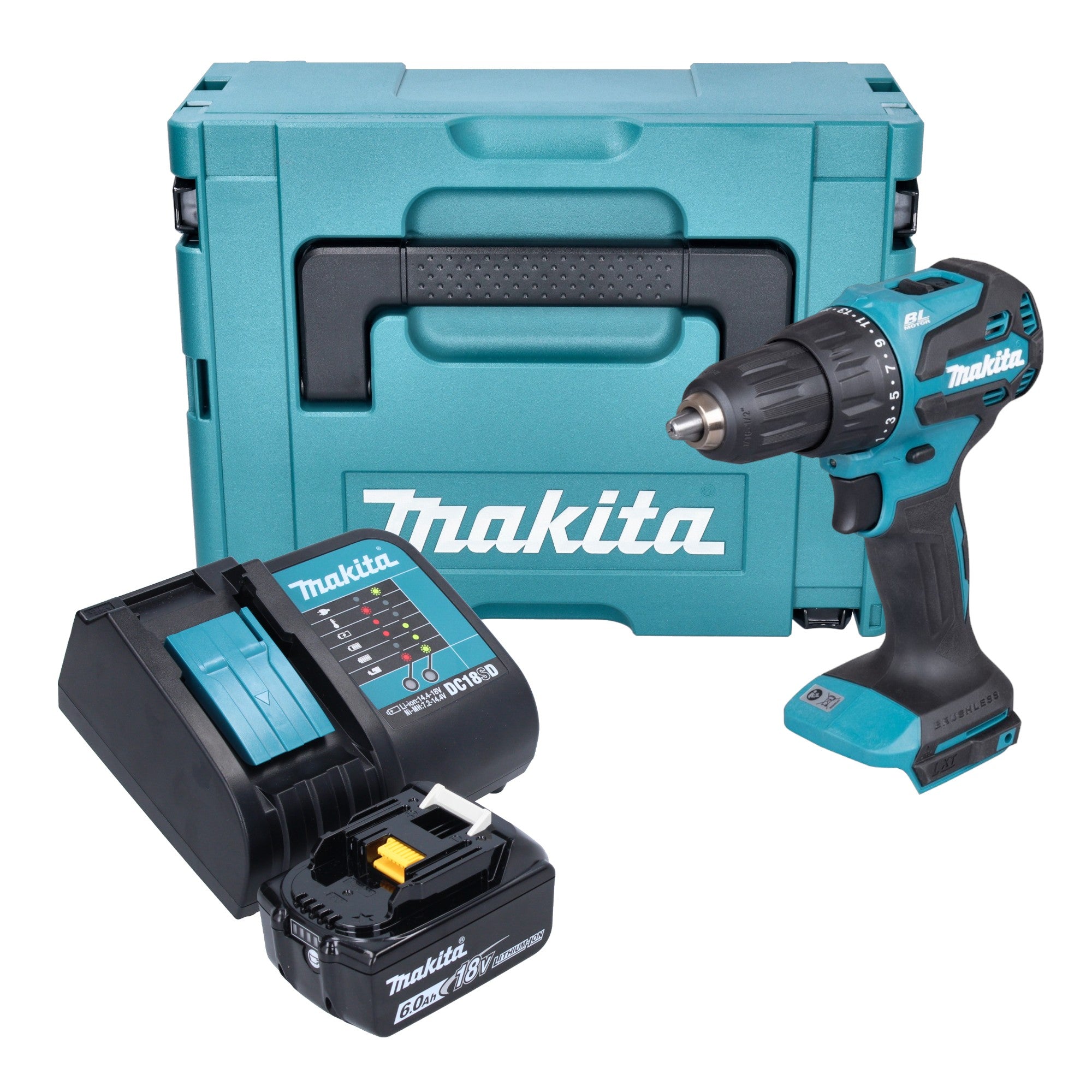 Makita DHP 490 SG1J Akku Schlagbohrschrauber 18 V 65 Nm Brushless + 1x Akku 6,0 Ah + Ladegerät + Makpac