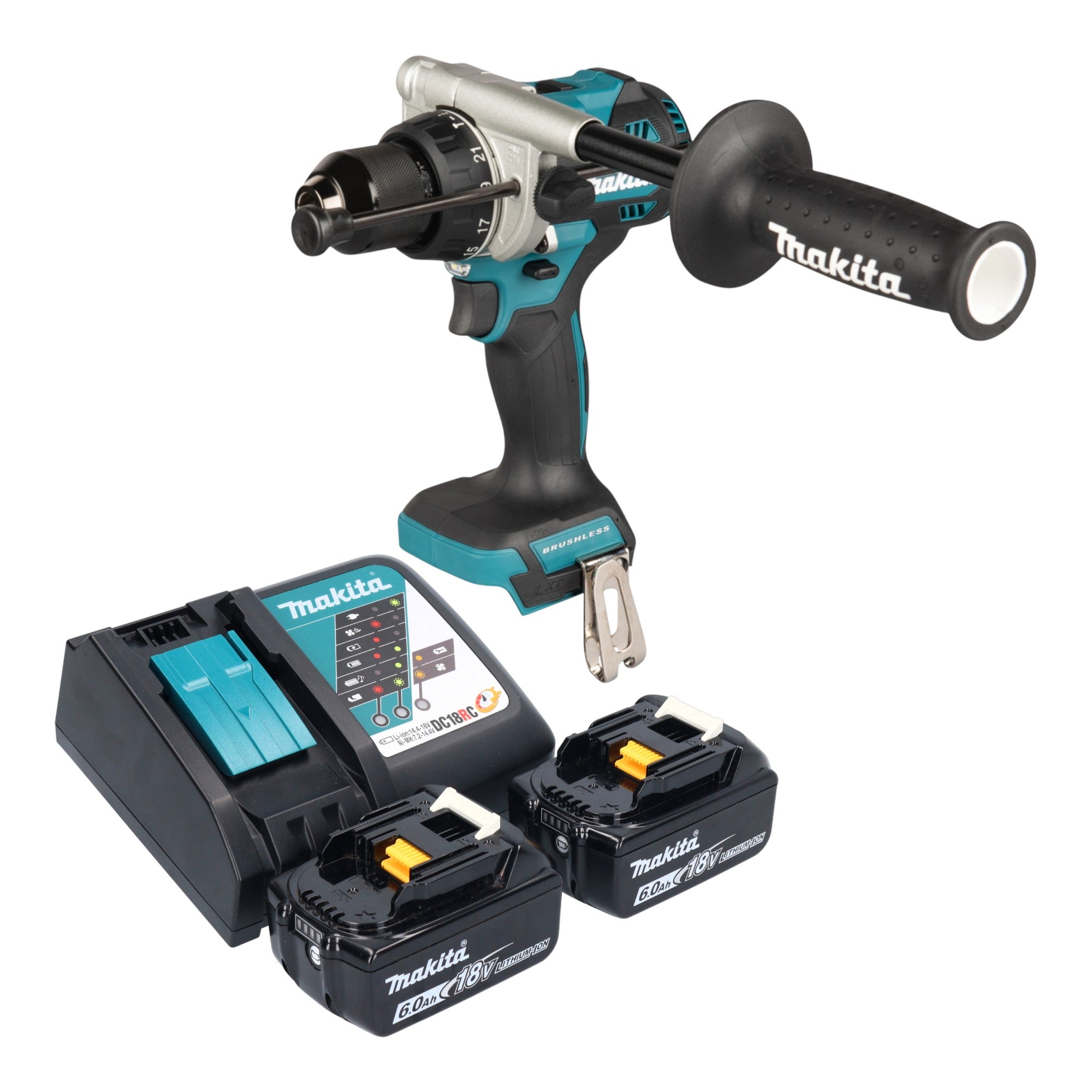 Makita DHP 492 RG Akku Schlagbohrschrauber 18 V 141 Nm Brushless + 2x Akku 6,0 Ah + Ladegerät
