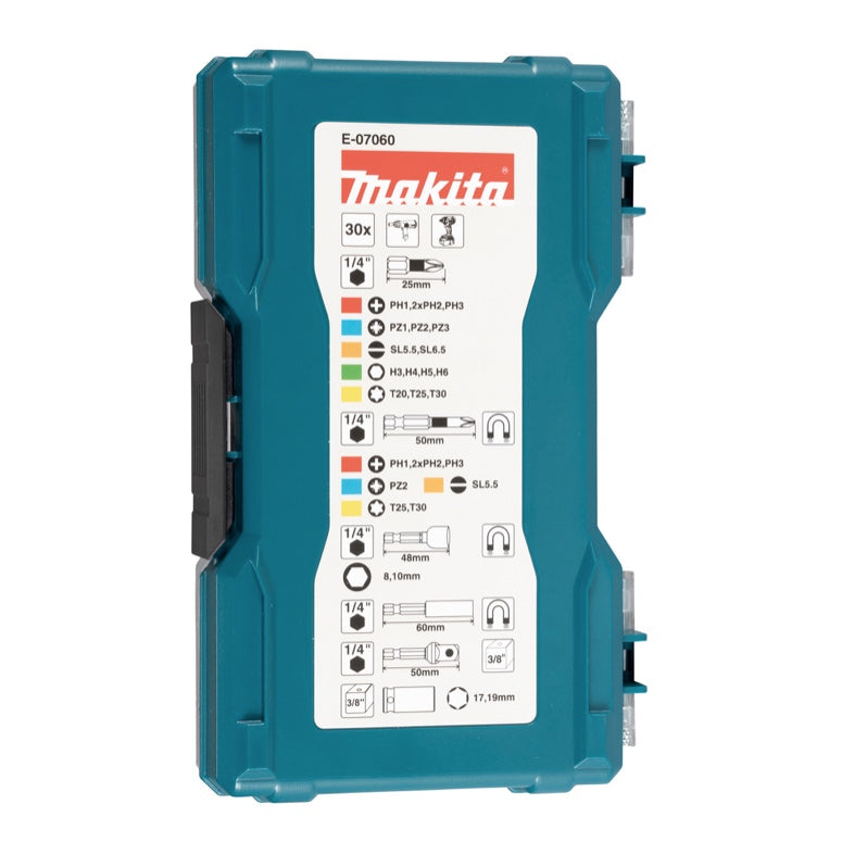 Makita Display Bit Set 10 x 30 teiliges Bit Sortiment ( E-07060-10 ) Schlitz / Phillips / Pozidriv / Torx / Innensechskant
