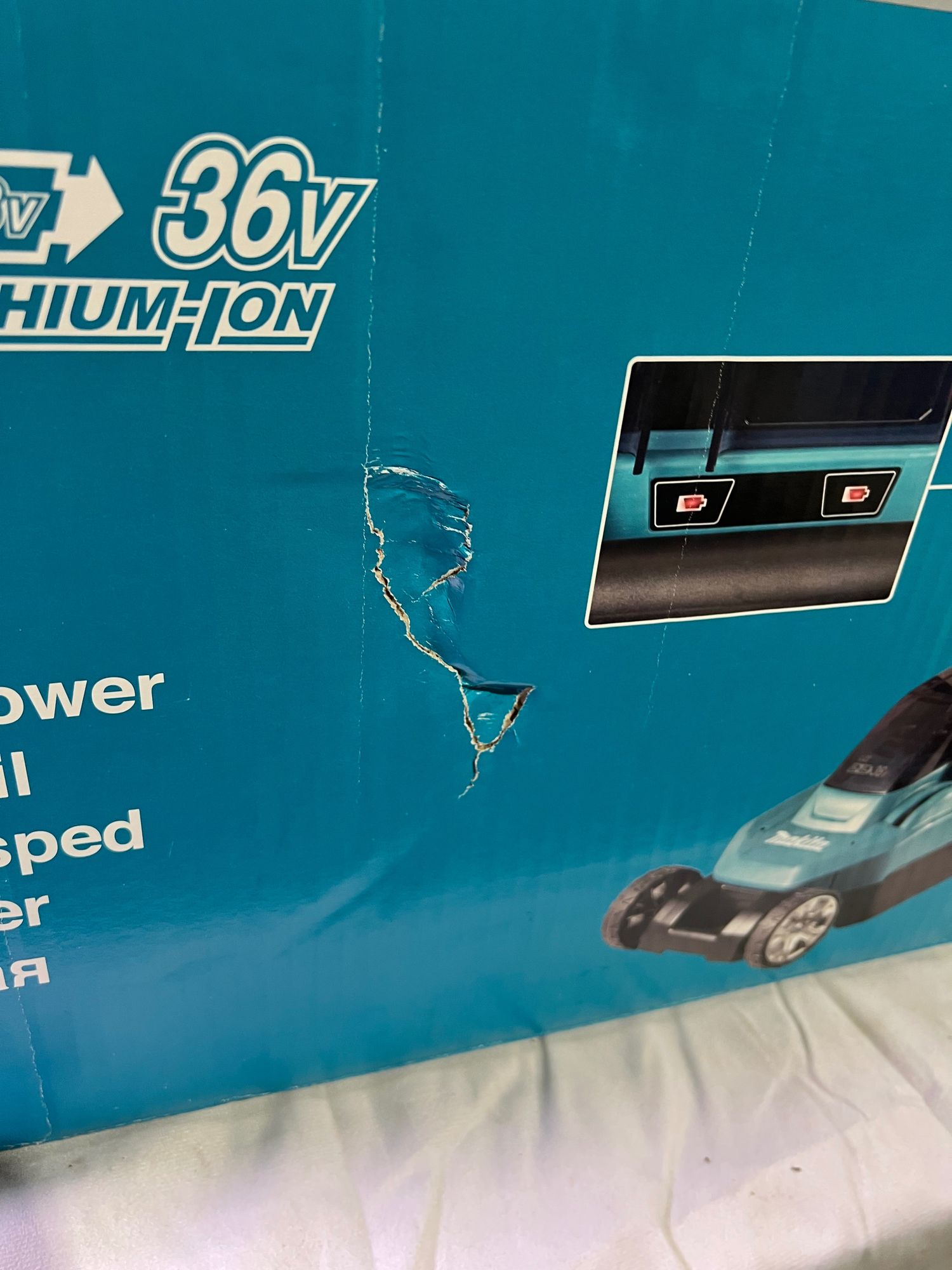 Makita DLM 382 Z Akku Rasenmäher 36 V ( 2x 18 V ) 38 cm 40 l Solo - ohne Akku, ohne Ladegerät - OVP Beschädigt