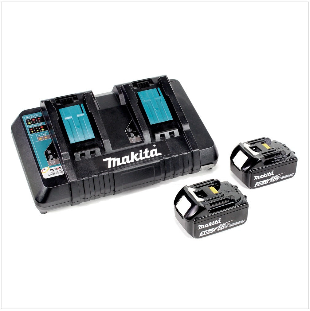Makita DUC 252 PF2 Akku Kettensäge 36V ( 2x18V ) 25 cm + 2x 3,0 Ah Akku + Doppelladegerät