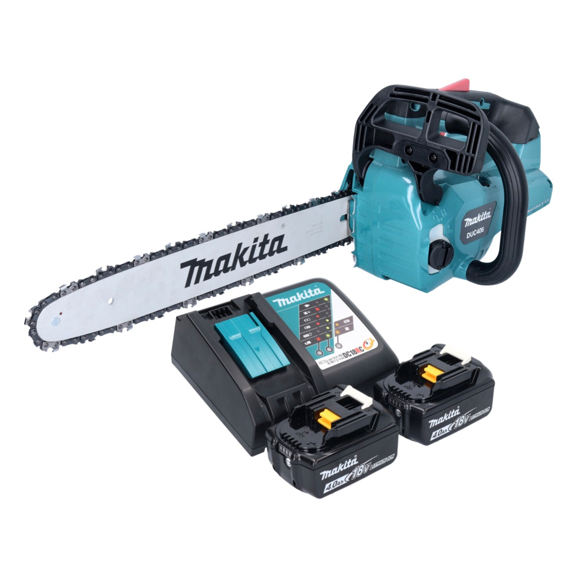Makita DUC 406 RMB Akku Kettensäge 36 V ( 2x 18 V ) 40 cm Brushless + 2x Akku 4,0 Ah + Ladegerät
