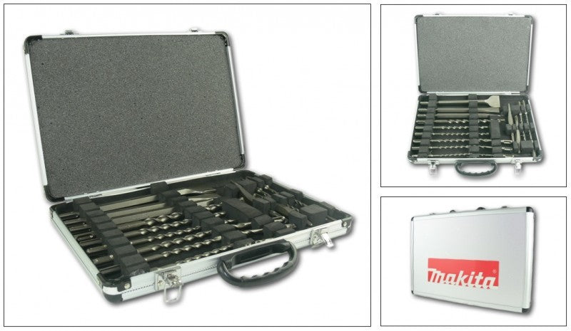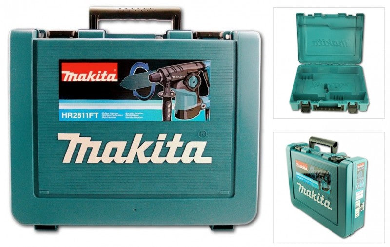 Makita HR 2811 FT Kombihammer + Bohrfutter + D-42444 SDS-Plus Bohrer-Meißel-Set 17 tlg. im Alu Koffer