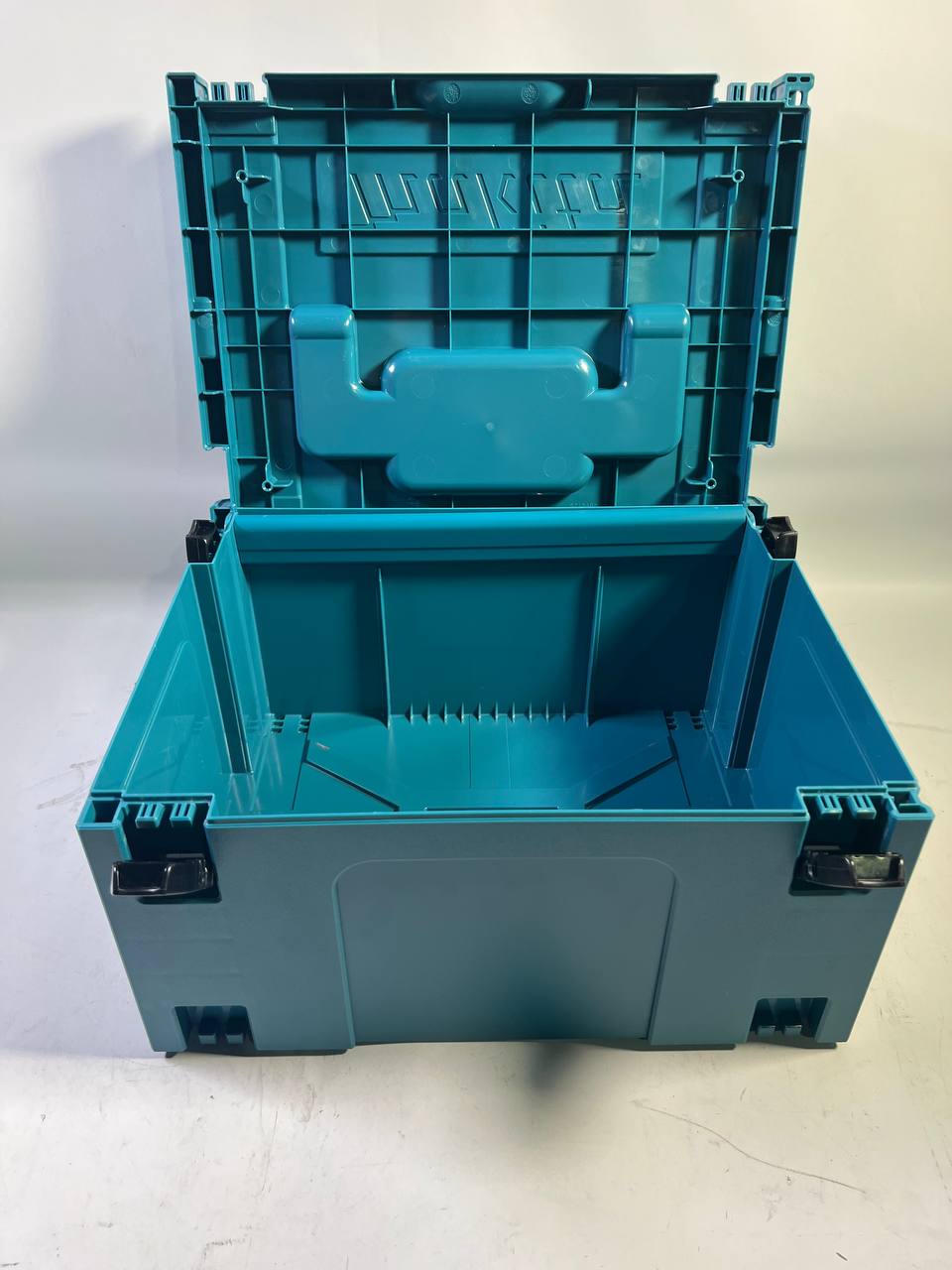 Der Makita MAKPAC 3 Kunstoffkoffer ist sehr robust und hat die Möglichkeit durch eine Einlage ergänzt zu werden (Einlage nicht im Lieferumfang enthalten). Er ist mit zwei Schnappverschlüssen und mit einem Tragegriff ausgestattet. Des weiteren sind alle MAKPAC Koffer und MAKPAC Organizer untereinander stapelbar und lassen sich mit den Schnappverschlüssen miteinander verbinden, um für Stabilität beim Transport zu sorgen.