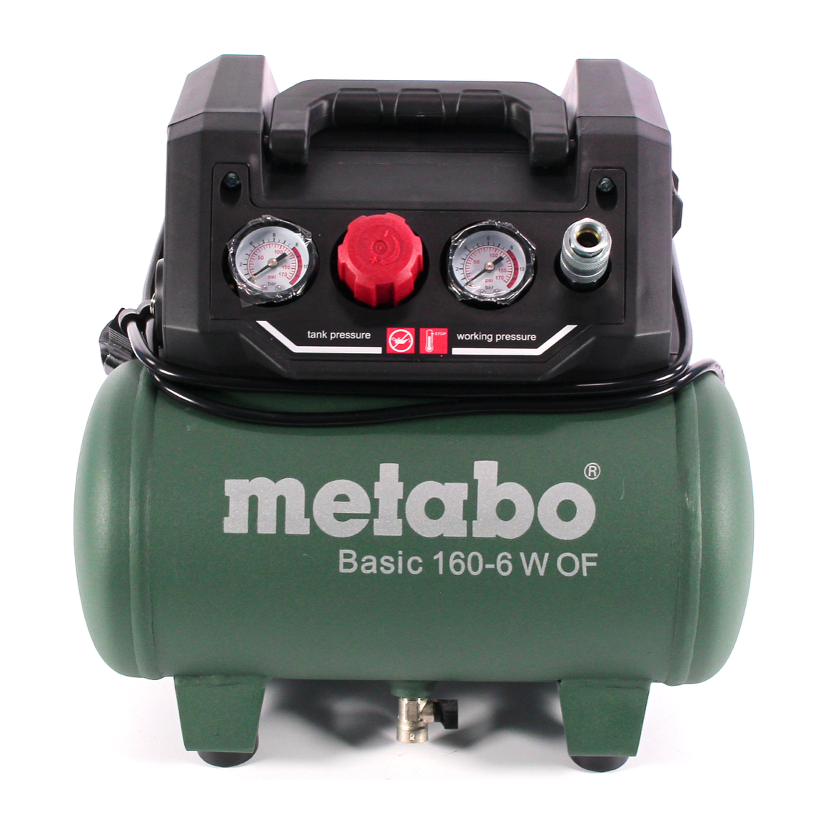 Metabo Basic 160-6 W OF Kompressor 900 W 8 bar + Prebena Spiralschlauch + Blaspistole + Reifenfüller