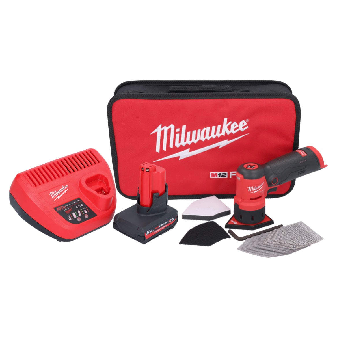 Milwaukee M12 FDSS-501B Akku Punktschleifer 12 V 88,8 x 63,5 mm + 1x Akku 5,0 Ah + Ladegerät