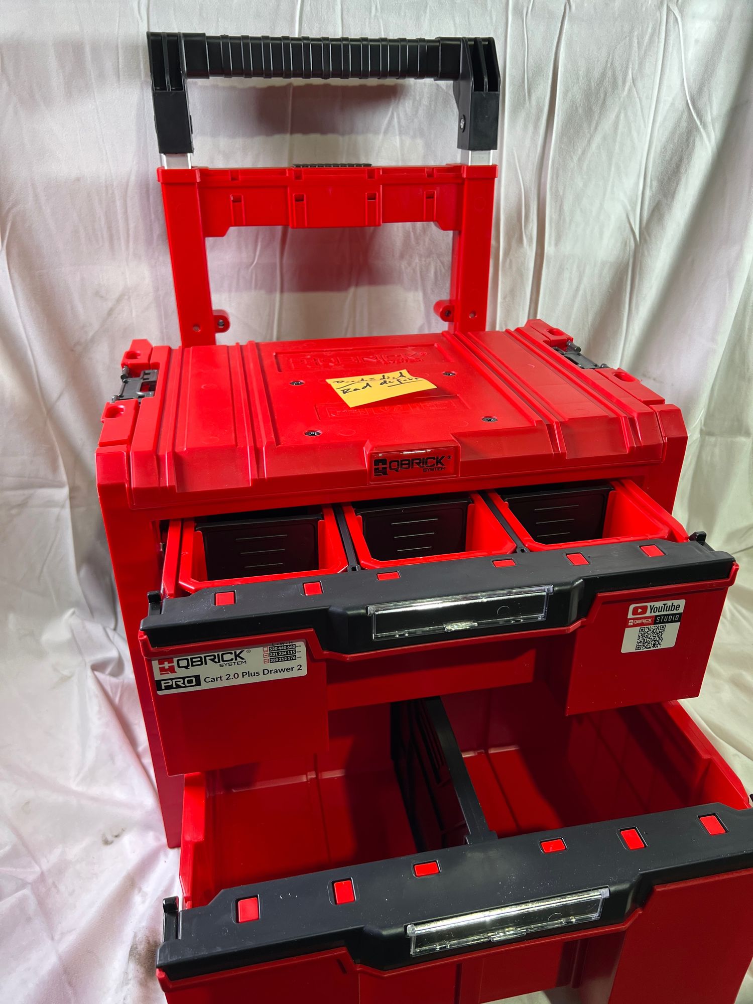Qbrick System PRO Cart 2.0 Plus Drawer 2 Red Ultra HD Custom mobile Box auf Rädern 520 x 415 x 660 mm 9,5 l 12 l abnehmbarer Doppelteleskopgriff - Beschädigt