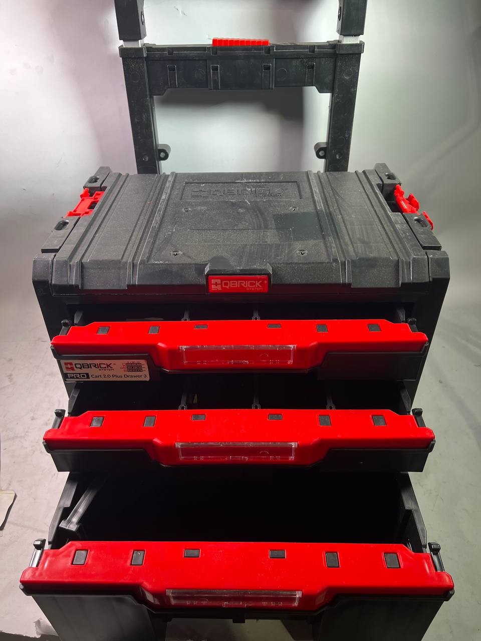 Qbrick System PRO Cart 2.0 Plus Drawer 3 mobile Box auf Rädern 520 x 415 x 660 mm 12 l 2x 4,5 l abnehmbarer Doppelteleskopgriff - Beschädigt