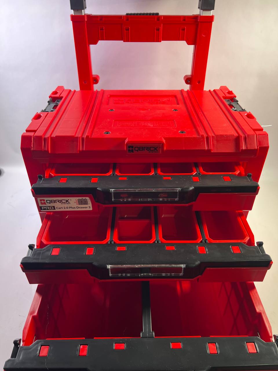 Qbrick System PRO Cart 2.0 Plus Drawer 3 Red Ultra HD Custom mobile Box auf Rädern 520 x 415 x 660 mm 12 l 2x 4,5 l abnehmbarer Doppelteleskopgriff - Beschädigt