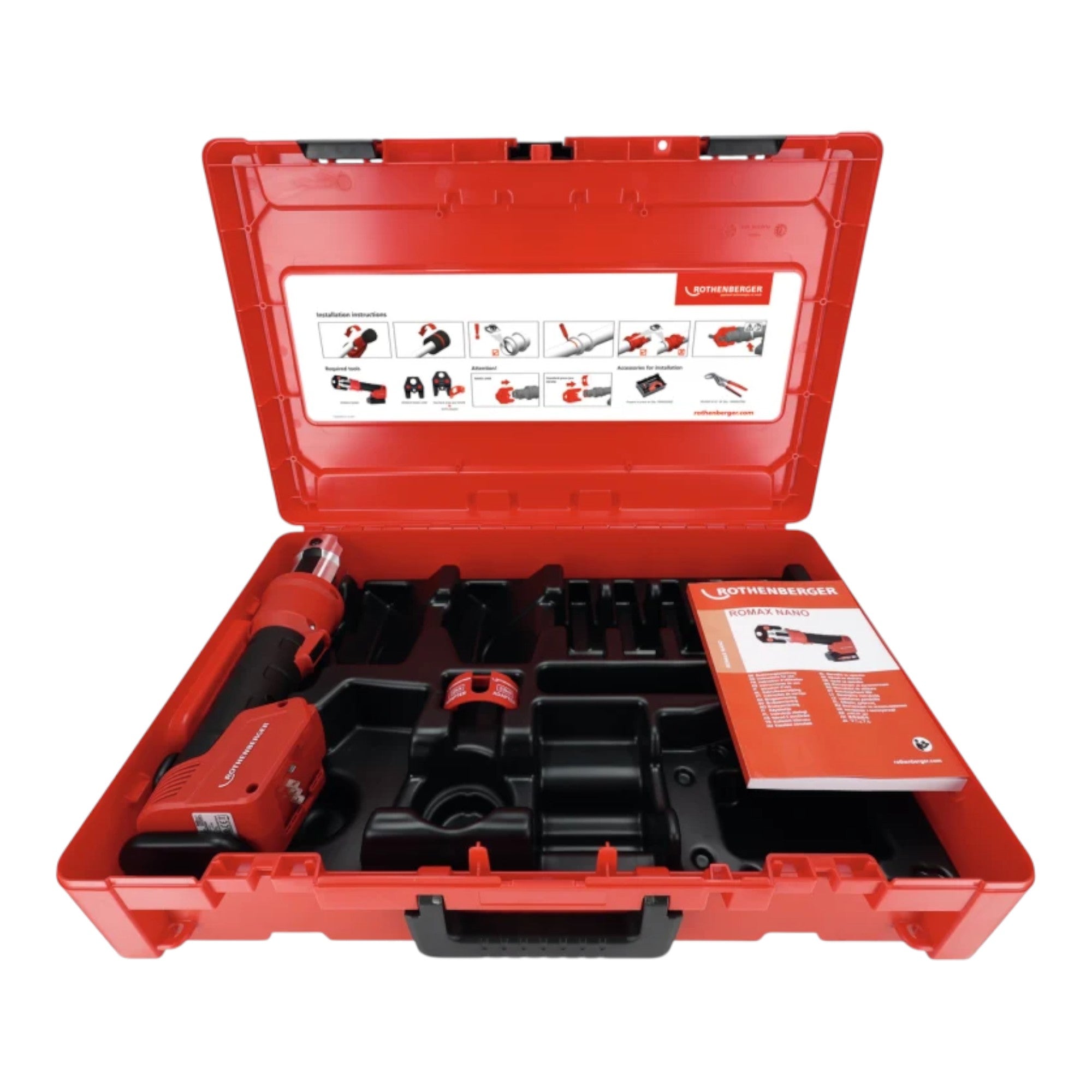 Rothenberger ROMAX NANO Akku Pressmaschine 18 V 34 kN CAS + 1x LiHD Akku 4,0 Ah + Ladegerät + Rocase