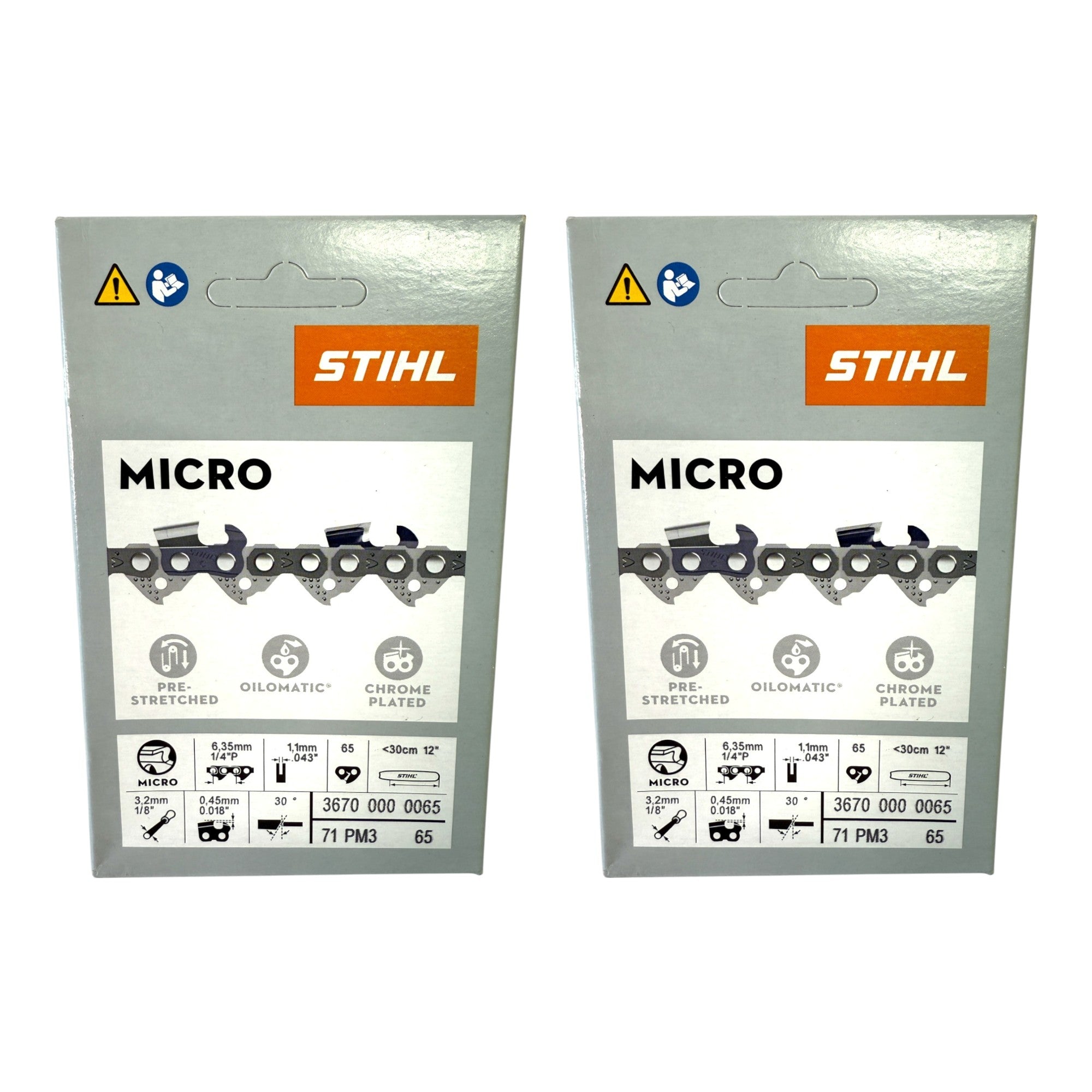 Stihl 2x 1/4" Picco Micro 3 (PM3) Sägekette 30 cm 1/4" P 1,1 mm 65 TG 2 Stück ( 2x 36700000065 )
