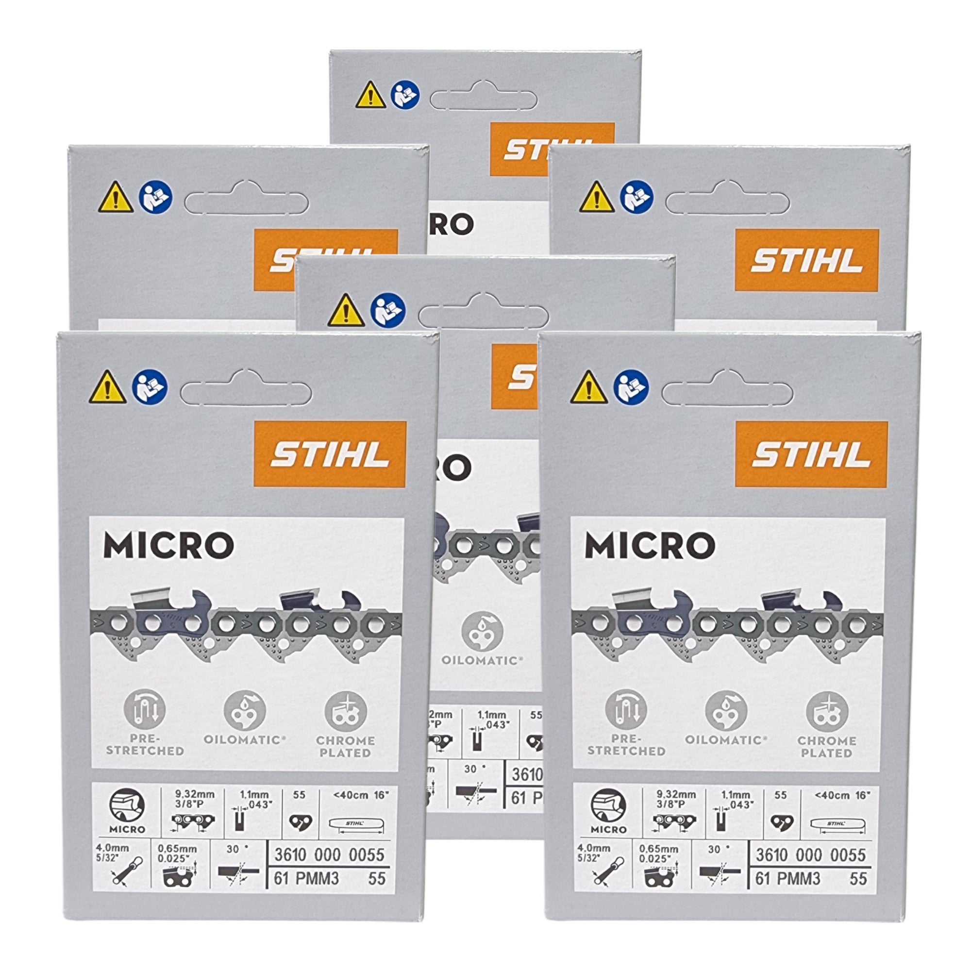 Stihl 6x 3/8" Picco Micro Mini 3 (PMM3) Sägekette 40 cm 3/8" P 1,3 mm 55 TG 6 Stück ( 6x 36100000055 )