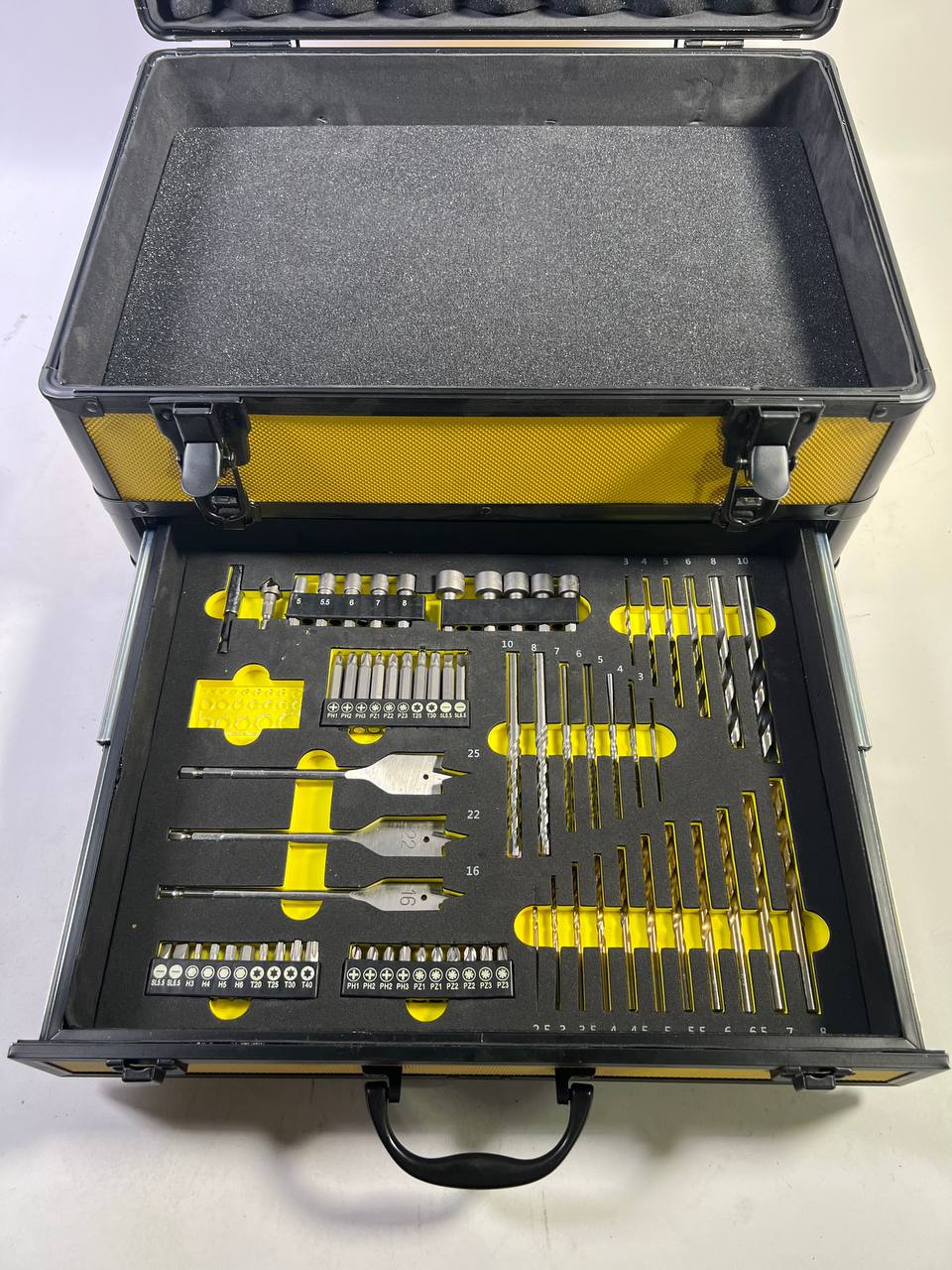 Toolbrothers TX Alu Werkzeug Koffer gelb für Akku Schlagschrauber und Schlagbohrschrauber + 70 tlg. Bit Bohrer Set + Würfelschaum Einlage - Neuwertig