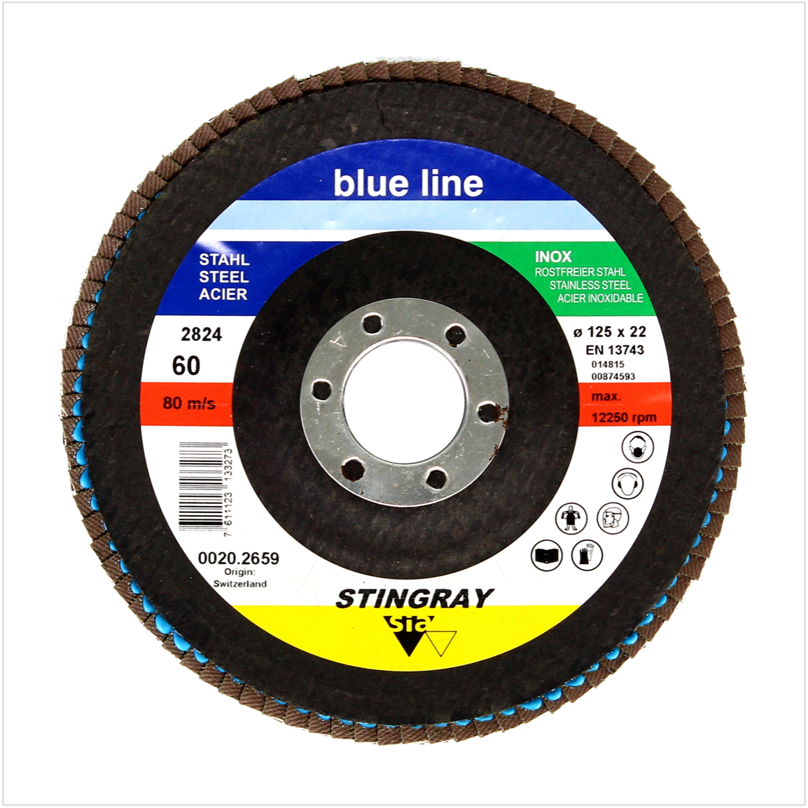 10x Bosch SIA 2824 Stingray Fächerscheibe 125 mm P60 für Stahl und Inox